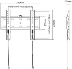 Beslaget opfylder VESA-standarder op til en maksimal størrelse på 200 mm x 200 mm, hvilket sikrer universel brug for forskellige tv-modeller. Afstanden fra væggen er kun 25 mm, hvilket sikrer et rent og elegant udseende i din stue.