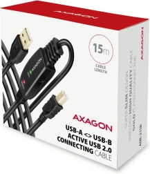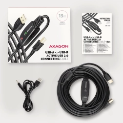 Aktiv USB-kabel AXAGON ADR-215B på 15 m gør det muligt at tilslutte enheder som printere, scannere eller plottere til computeren over længere afstande. Takke være den integrerede signalforstærker sikres stabil kommunikation selv på lange afstande. Kablet kan yderligere forlænges via en forlænger. Egenskaber: