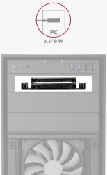 - Mål og monteringshuller svarer til standard 3,5" plads i PC-kabinet.