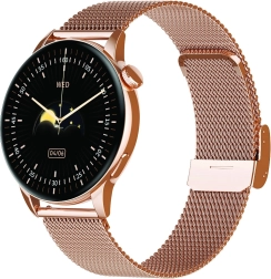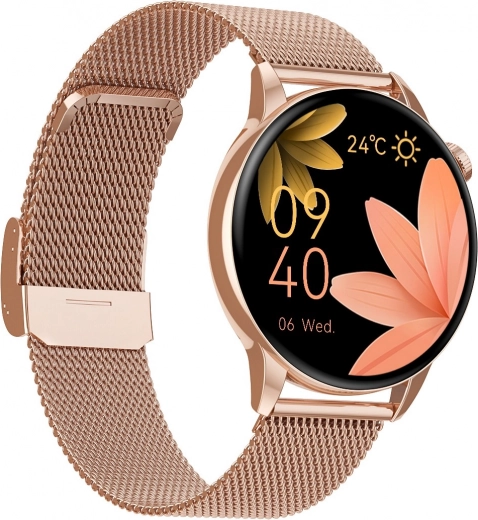 Dette smartwatch skiller sig ud med sit gyldne design og premium udførelse, der tiltrækker opmærksomhed.