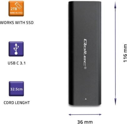 Leder du efter en elegant og hurtig løsning til backup og dataoverførsel? QOLTEC ekstern boks til M.2 NVMe SSD er det ideelle valg til hjemmet, professionelle og små virksomheder. Aluminiums-huset sikrer effektiv varmeafledning og holdbarhed, mens det minimalistiske design passer både på skrivebordet og i tasken.