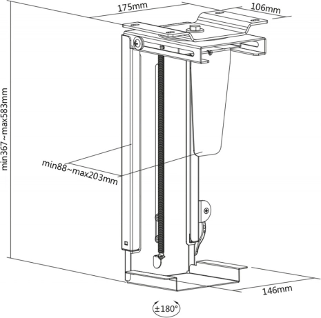 En praktisk og elegant løsning til hjem og kontor: Den universelle CPU‑holder under bordpladen frigør plads på skrivebordet, holder kabinettet sikkert og giver dig nem adgang til alle porte. Takket være den smarte Easy‑Locking‑mekanisme kan du justere bredde og højde på et øjeblik og helt uden værktøj.