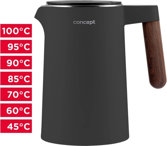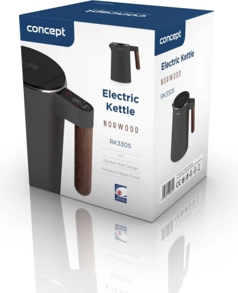 Kedlen Concept RK3305 Norwood imponerer med mat mørkegrå udførelse og en elegant trædekoration på håndtaget, hvilket gør den til et perfekt match i det moderne køkken. Kapaciteten på 1,5 liter er ideel til daglig tilberedning af te, kaffe og babymad.