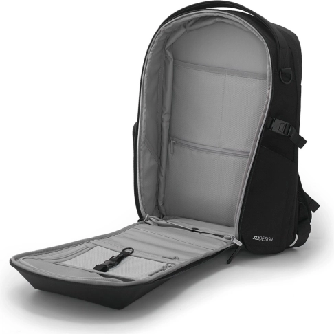 Bizz-rygsæk sort er den perfekte ledsager til hverdagen og rejser, med en række praktiske funktioner, inklusive udvidelig kapacitet, polstret bærbar-rum, hydrofobisk overflade og skjult RFID-lomme.