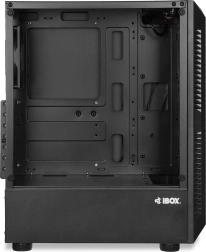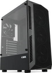 iBOX Lupus 27 er et moderne pc-kabinet designet til gamere og krævende brugere. Kombinationen af hærdet glas på siden og åndbar mesh-front med RGB-belysning fremhæver dine komponenter og sikrer samtidig effektiv køling. Et ryddeligt interiør understøttes af bundmonteret strømforsyning i en separat tunnel, hvilket giver et overskueligt luft- og kabelsystem.