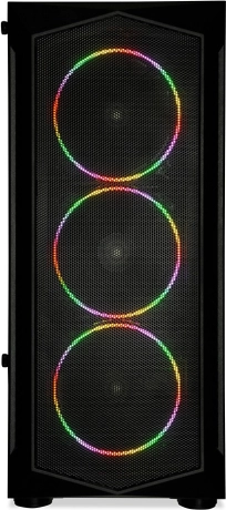- Mesh-front og 4× 120 mm blæser (3× RGB foran + 1× bagpå) for fremragende køling
