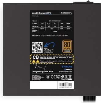 ENDORFY Vero L5 Bronze 600 W er et sikkert valg til moderne PC-byg. Takket være DC-DC-konvertering holder den stabil spænding ved skiftende belastning og leverer konstante 600 W til gaming-grafikkort, flerkernede processorer og krævende arbejdsstationer. 80 PLUS Bronze-certificeringen betyder højere effektivitet, færre tab og mere stillegående drift.