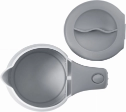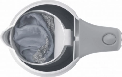Den praktiske udrustning glæder på hvert skridt – to plastkopper gemmes direkte i kedlens krop, så de ikke fylder, og det beskyttende etui gør transport og opbevaring lettere. Sikkerheden sikres af automatisk slukning ved kogepunktet og beskyttelse mod overophedning.