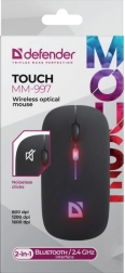 Den stilfulde trådløse mus DEFENDER Touch kombinerer stille klik for uforstyrret arbejde, pålidelig dobbeltforbindelse Bluetooth + 2,4 GHz, effektfuld RGB-belysning og præcis indstilling af 800/1200/1600 DPI. Takket være det genopladelige batteri sparer du på batterierne, og den sorte udgave passer både til kontoret og hjemmemiljøet.