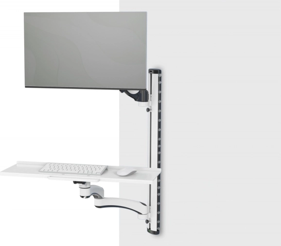 DIGITUS vægarm kombinerer en skærmholder med en separat hylde til tastatur og mus, så du skaber en fuldt funktionel, pladsbesparende arbejdsstation fra én væg. Armen med kabelhåndtering holder orden, og takket være trinløst højdejusterbare arme kan du nemt indstille optimal ergonomi.