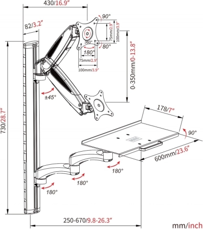 Skab en ergonomisk arbejdsplads ved væggen med det universelle DIGITUS-beslag til skærm og tastatur/mus. Det tilbyder trinløs højdejustering, 180° rotation, 45° tilt og 360° pivot. Den stabile konstruktion i aluminium og stål, integreret kabelstyring og nem vægmontering gør det til en ideel løsning til at spare plads og arbejde komfortabelt.