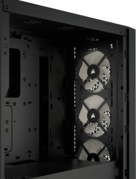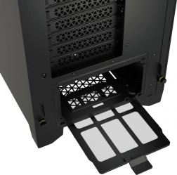 - Dedikeret køling til grafikkort: Kabinettet er klar til de nyeste grafikkort og har to ekstra beslag til montering af 120 mm blæsere på PSU-dækslet, så luftstrømmen kan rettes direkte mod grafikkortet.