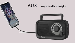Til privat lytning kan du bruge hovedtelefonudgangen, mens AUX-indgangen gør det muligt at afspille musik fra telefonen eller en afspiller. Komfortable drejeknapper til lydstyrke og tuning gør daglig brug behagelig.