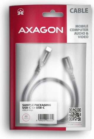 AXAGON USB‑C ↔ USB‑C forlængerkabel 0,5 m med 20 Gbps, PD 240 W og video op til 8K/60 Hz. Holdbart flettet design, 5 A, metalender, stabil forbindelse.