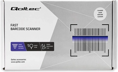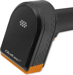Kraftig trådløs stregkodelæser fra Qoltec til lager, detail og logistik, som tilbyder hurtig scanning af 1D- og 2D-koder, op til 40 timers driftstid, automatisk tilstand og stødsikkerhed ved fald op til 1,5 m. Nem implementering takket være Plug&Play, bekvem opladning i dockingsstation og pålidelig lydindikering ved bekræftet aflæsning.