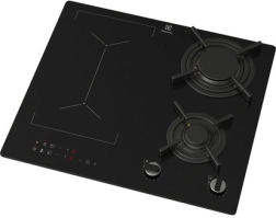 Den kombinerede induktions- og gaskogeplade tilbyder brede madlavningsmuligheder takket være kombinationen af gasblus og elektrisk kogeplade. Denne fleksibilitet gør det muligt at tilpasse varmekilden til forskellige typer retter.