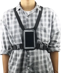 Justerbare stropper med robuste spænder holder telefonen tæt til kroppen, så den ikke gynger under aktivitet og altid forbliver i synsfeltet.