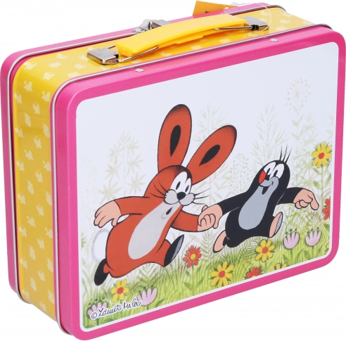 Denne søde blikæske kuffert er dekoreret med billeder af den elskede helt Krtek - på den ene side med en kop og på den anden side med en hare. Den er fantastisk til organisering og sikker opbevaring af dit barns småting.