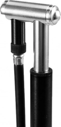 Robust aluminiumsdesign, kun 169 g og ca. 32 cm i længden sammenklappet. Nem montering på rammen og 360° roterende slange for komfort.