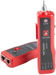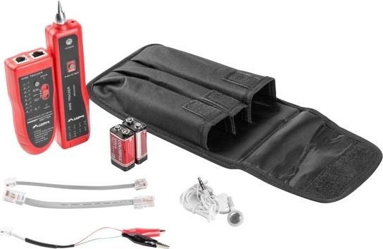 Testeren inkluderer en sender og en modtager, som muliggør test af kabelkontinuitet og sporing af ledere med vigtige RJ45-porte.