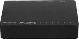 LANBERG DSP2-1005 er en lille og praktisk switch med 5 RJ-45-porte, der understøtter hastigheder på 10/100/1000 Mbps med automatisk detektion og konfiguration af forbindelsen. Takket være den universelle 12V strømforsyning er den kompatibel med mange enheder, såsom overvågningssystemer og andre IT-enheder, hvilket gør det muligt for brugeren at tilpasse strømforsyningen efter behov.