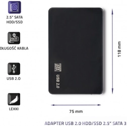 Eksternt harddiskkabinet til 2,5'' HDD/SSD-diske giver en ideel løsning til sikker transport af dine data. Nyd hurtig og nem redigering af filer takket være høj kompatibilitet med både Windows- og Mac-systemer.