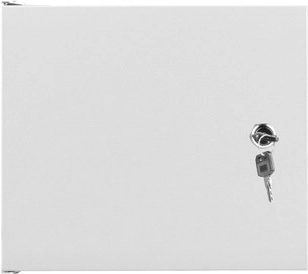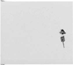 Konstruktionen med IP20-beskyttelse værner installationen mod støv, låselig dør med åbning op til 180° giver nem adgang, og øvre samt nedre gennemføringer forenkler kabelhåndtering. Den gennemprøvede stålkabinet med belastningskapacitet på 20 kg leveres i praktisk flat pack-emballage med tilbehør til montering.