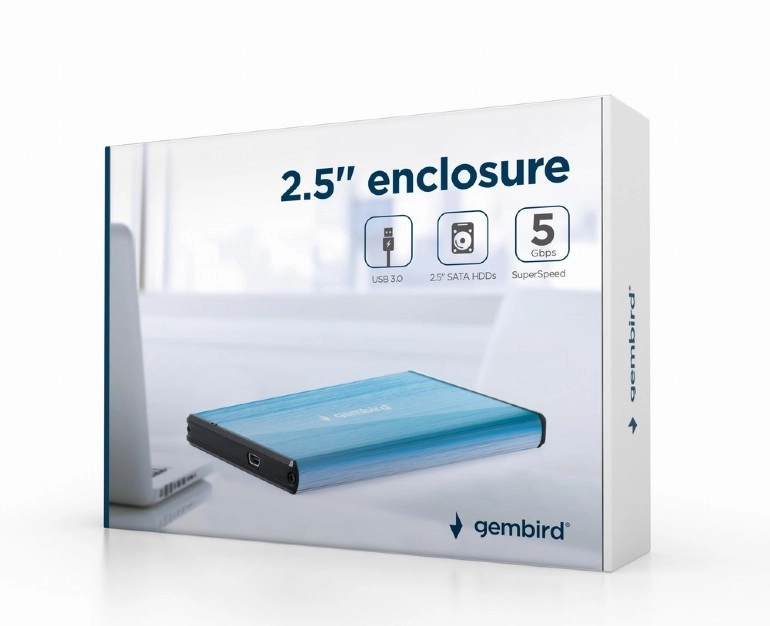 Kompakt eksternt kabinet til 2,5" SATA-diske med USB 3.0, som sikrer hurtig dataoverførsel og nem udvidelse af lagerpladsen. Fuld kompatibilitet med USB 2.0, understøttelse af kapaciteter op til 2 TB og problemfri brug i Windows 10. Elegant blåt design til arbejde og rejse.