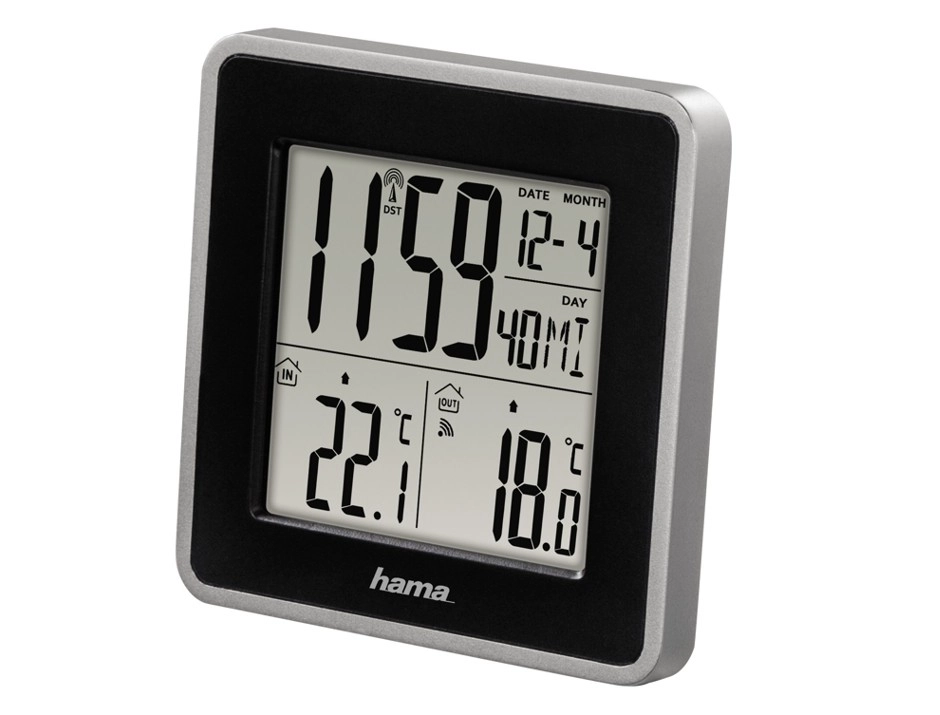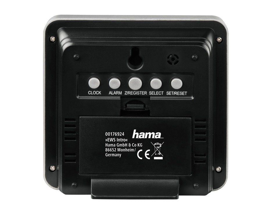 Vejrstationen HAMA EWS Intro er en praktisk hjælper i enhver husstand. Takket være den trådløse sensor kan du nemt følge aktuel indendørs- og udendørstemperatur, trend og gemte minimums- og maksimumsværdier. Det store og overskuelige display viser samtidig tid, dato og dag på ét af fem sprog.