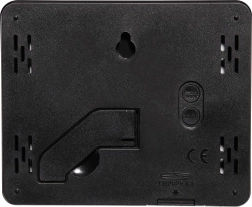 Enheden tilbyder også registrering af minimale og maksimale værdier for et bedre overblik over døgnets udsving. Det elegante, flade kabinet med blank overflade virker diskret og stilfuldt, og den praktiske stander samt mulighed for vægmontering gør placeringen nem i stue, soveværelse eller børneværelse.