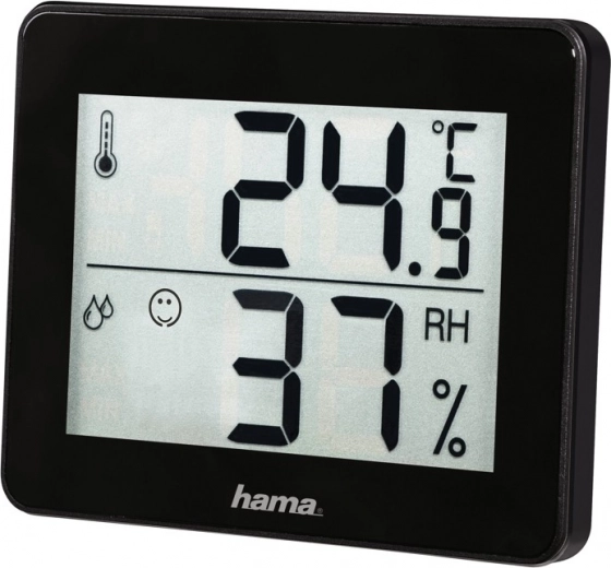 Hama TH‑1130 er en pålidelig hjælper i hjemmet til overvågning af indeklimaet. På det store, letlæselige display ser du straks den aktuelle temperatur i °C og luftfugtighed i %. Den integrerede komfortindikator med tre tydelige symboler (smilende, neutral og trist) hjælper dig med at vurdere, om miljøet er behageligt og sundt.