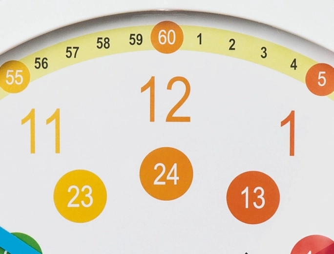 Støt børns naturlige nysgerrighed med et farverigt ur, der lærer dem at aflæse klokken trin for trin. Store arabertal, farvekodning og tydelig opdeling i 12/24 timer samt minutter hjælper børn med hurtigt at forstå principperne for tidsangivelse.