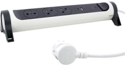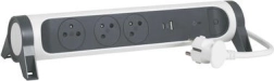 Denne forlængerledning med overspændingsbeskyttelse er udstyret med tre stikkontakter i fransk standard og USB-porte af typen A og C. Kablet muliggør en drejning på 12° til højre eller venstre, hvilket øger komforten og fleksibiliteten ved brug. Dens tofarvede design i kombinationen af hvid, sort og antracit skaber et moderne og stilfuldt udseende.