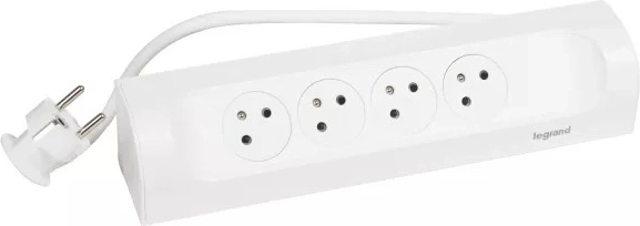Den vinklede forlængerledning fra Legrand med fire jordede stikkontakter i hvidt design er et fremragende valg til steder, hvor pladsen skal udnyttes bedst muligt. Takket være den trekantede form kan den monteres vertikalt i hjørner af vægge eller horisontalt i samlingen mellem væg og bordplade.