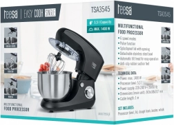 Køkkenmaskine Easy Cook SINGLE sort er designet til at opfylde alle dine behov ved madlavning og bagning. Med dens robuste konstruktion, der består af en kombination af metal og plastik, kan den nemt håndtere selv de mest krævende opgaver. Det er lettere at blande ingredienser takket være det vipbare hoved, som giver nem adgang til skålen.