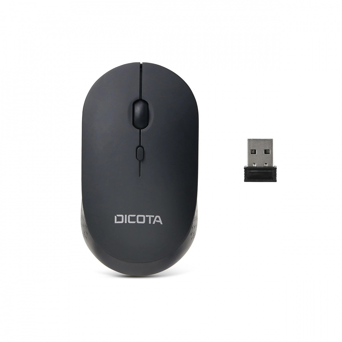 Elegant og kompakt trådløs mus med optisk sensor, der tilbyder stille klik og rulning, justerbar følsomhed 800/1200/1600 DPI og Plug & Play-tilslutning via USB. Takket være den symmetriske form er den velegnet til både højre- og venstrehåndede og kører på ét AA-batteri.