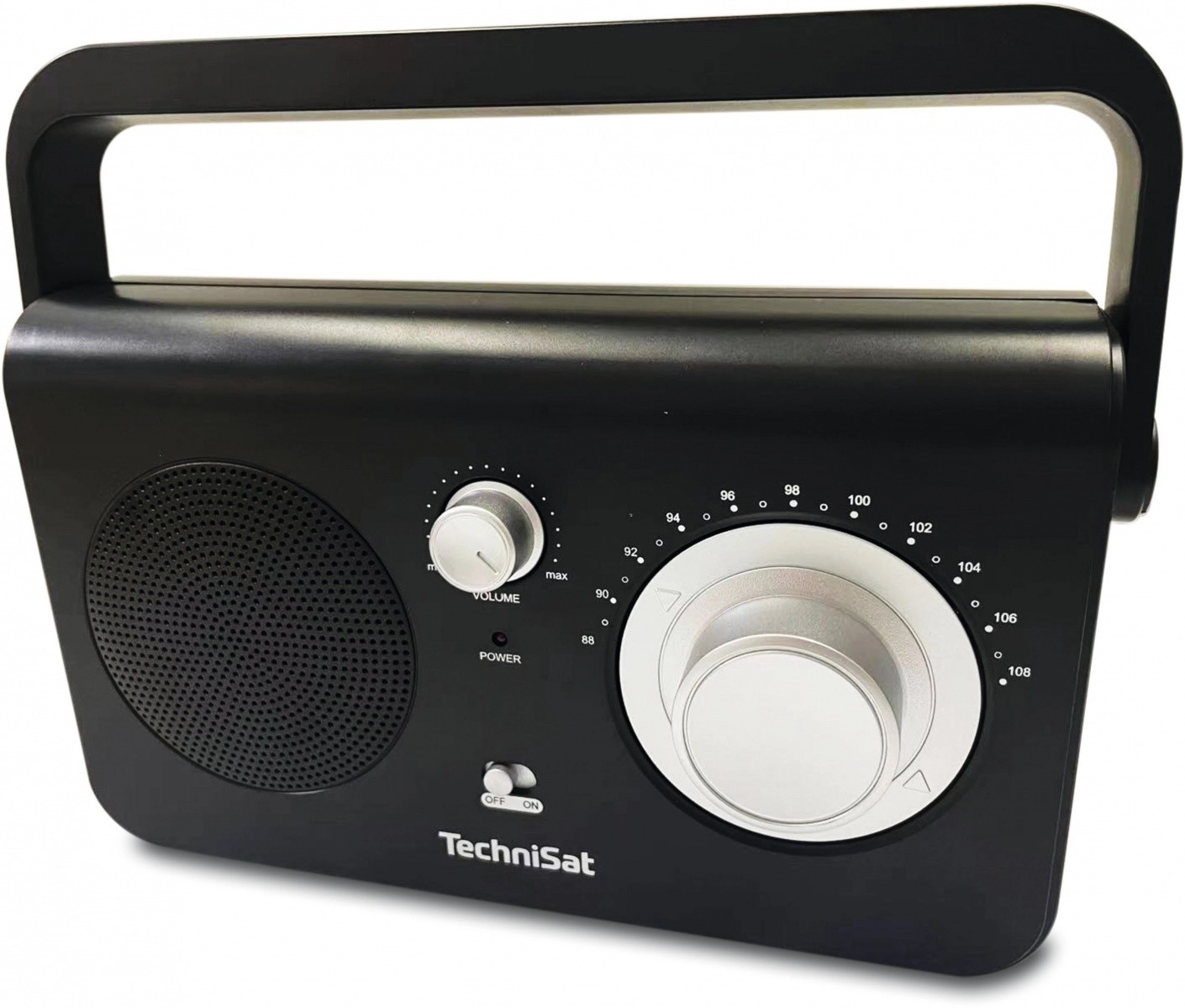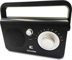 Det elegante kabinet er lavet af matfarvet, meget holdbar plast. Det store håndtag gør det nemt at bære radioen.