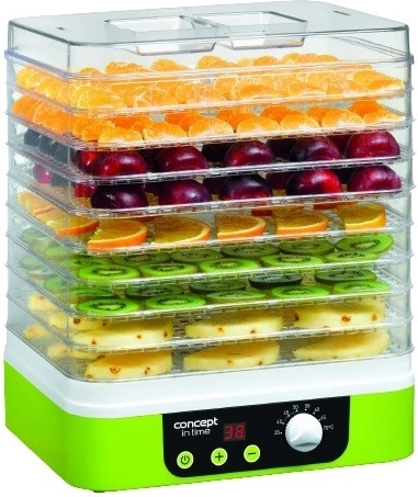 Fødevaretørreren Concept SO1060 er en pålidelig hjælper til helårsforråd. Du kan tørre næsten alt – fra frugt, grøntsager og krydderurter til svampe og endda kød. Hjemmetørring er skånsom og bevarer smag, duft og næringsstoffer, så den er ideel til sunde snacks, teblandinger og køkkenmix.