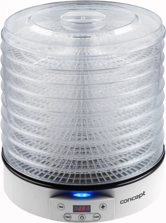 Koncept SO2020 Madtørrer er ideel til at forberede sunde snacks og spise RAW FOOD. Takket være det justerbare temperaturområde fra 35 °C til 70 °C og den høje effektivitet af ventilatoren, tilbyder den perfekt tørring af alle fødevarer.