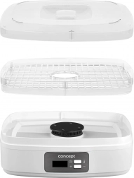Denne dehydrator gør det muligt effektivt at opbevare overskydende mad uden at miste dens næringsværdi. Tør frugt, grøntsager, pasta eller kød og forlæng dermed holdbarheden. Den justerbare afstand mellem bakkerne sikrer desuden, at selv større stykker frugt får plads.