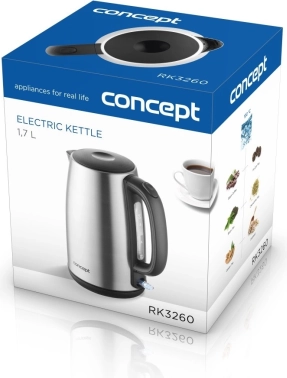 Den elektriske kedel Concept 1,7 l RK3260 gør det nemt at tilberede rigelige mængder vand til hele familien. Den er fremstillet af kvalitetsrustfrit stål, som er korrosionsbestandigt og let at vedligeholde.