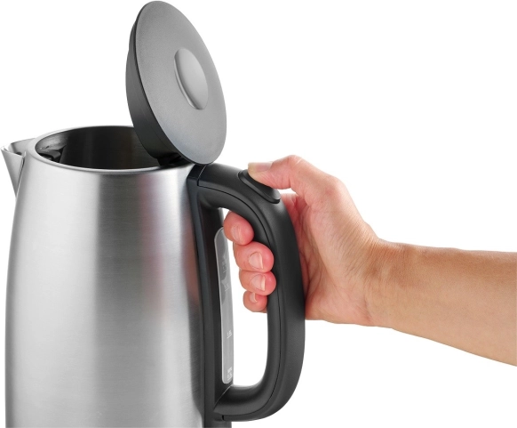 - Nemt at betjene og vedligeholde: Kedlen er udstyret med en knap til nem åbning af låget og har en bred åbning for komfortabel påfyldning af vand.