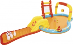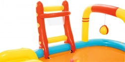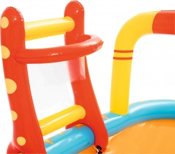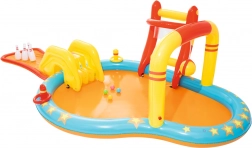 BESTWAYs vandlegecenter er det ideelle valg til familiehaven. Den brede legeflade med lavt bassin (kapacitet ca. 314 l) og en aftagelig rutsjebane skaber et sikkert miljø for mindre børn. Den forfriskende vandspreder gør varme dage mere behagelige, mens den bløde oppustelige bund øger komforten under legen.