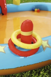 Det rige udstyr inklusive kegler, oppustelige ringe, bolde og kurv understøtter forskellige aktiviteter og udvikler koordination og motorik. Forældre vil sætte pris på nem tømning takket være aftapningsventilen og enkel vedligeholdelse. Perfekt til eftermiddagssjov med venner og hyggelige stunder med familien.