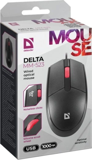 DEFENDER Delta MM-523 er en pålidelig optisk mus designet til komfort og præcision ved arbejde og studier. Takket være kablet USB-forbindelse kan du regne med stabil ydeevne uden forsinkelse, mens de støjsvage kontakter minimerer støj både på kontoret og derhjemme.
