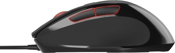 Softwaren giver detaljeret tilpasning – fra fire brugerprofiler for DPI (800–4000) over belysning til makroer for 5 programmerbare knapper. Det ergonomiske kabinet med gummieret scrollhjul, sidegreb og teflonfødder giver glat glideevne og komfort selv ved længere brug.