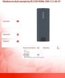 Det eksterne Savio-kabinet understøtter M.2-diske i formaterne 2230, 2242, 2260 og 2280, hvilket giver høj fleksibilitet ved valg af lager. Takket være bred kompatibilitet med operativsystemer som Windows XP/Vista/7/8/10/11, MacOS og Linux er det ideelt for forskellige typer brugere.