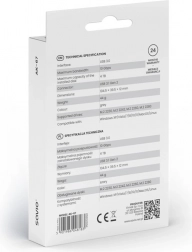 Med de kompakte mål 104,5 × 39,5 × 12 mm og en vægt på 44 g er det velegnet til mobil brug. Den robuste konstruktion i metal i grå farve sikrer holdbarhed og et moderne udseende.