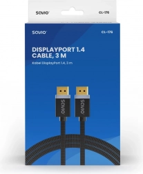 Højkvalitets DisplayPort-kabel 1.4 med længde på 3 m til overførsel af video op til 8K ved 60 Hz og 4K ved 120 Hz. Understøtter teknologierne HDR, DSC 1.2, FEC samt synkronisering FreeSync og G‑SYNC. Holdbare forgyldte stik og tekstilet fletning sikrer stabil forbindelse og lang levetid.