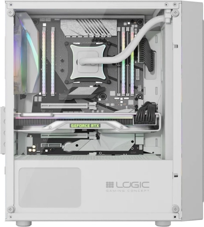 LOGIC Atos ARGB mini er et elegant hvidt kabinet designet til moderne gaming-PC’er. Den luftige front i mesh og to forinstallerede 120 mm ARGB-blæsere sikrer fremragende luftflow, lavere temperaturer og stille drift. Det betyder, at dine komponenter kører mere effektivt og holder længere.